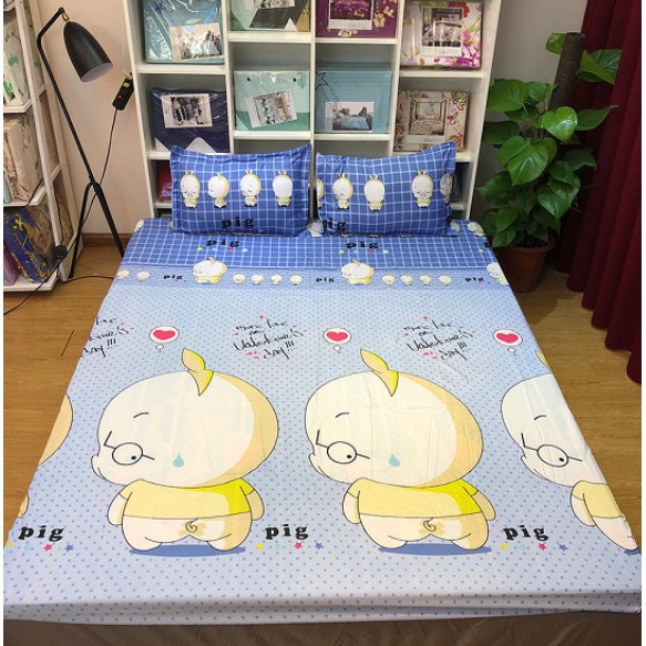 Bộ ga gối poly cotton mẫu BA CON HEO CHO BÉ YÊU