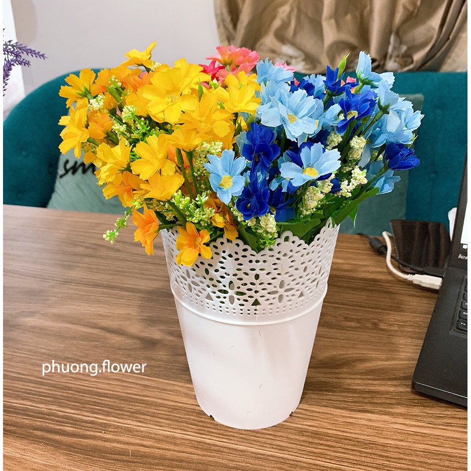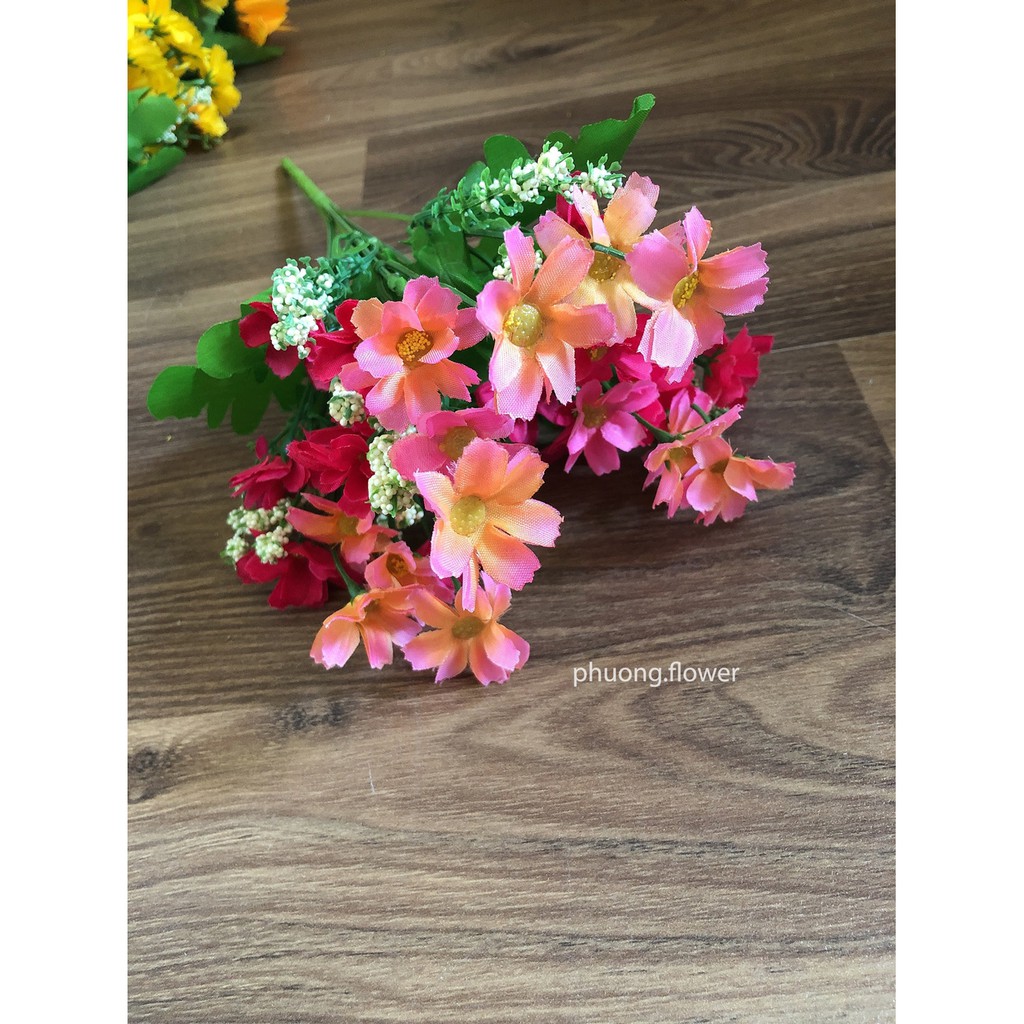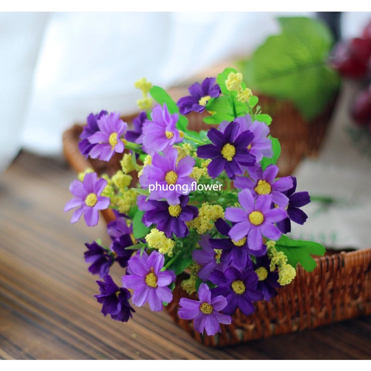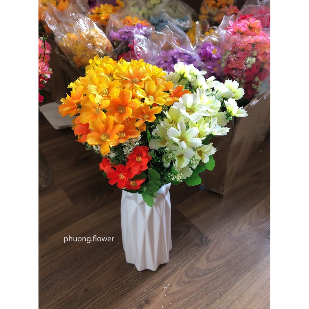 Cây Hoa Cúc bằng vải lụa 28 hoa giả nhân tạo dùng cắm hoặc làm đạo cụ chụp ảnh cực cute