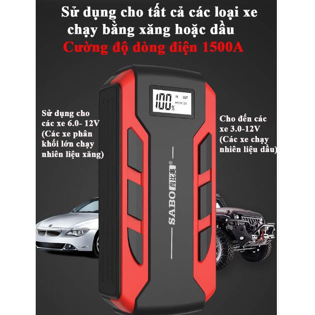 Bộ kích điện bình ắc quy ô tô SABO 20.000 mAh- Bộ đề nổ đa năng tích hợp pin dự phòng
