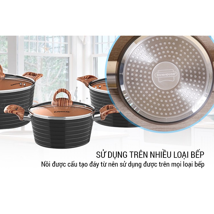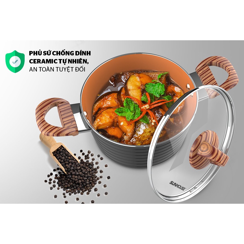 BỘ NỒI 2 NỒI 20, 18CM CERAMIC ĐÁY TỪ SUNHOUSE SHG2003MCA