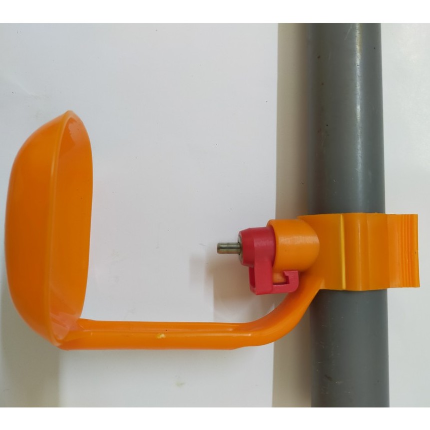 Máng uống tự động cho gà lắp ống 27 loại 1 quai có van 360 độ vàng cam