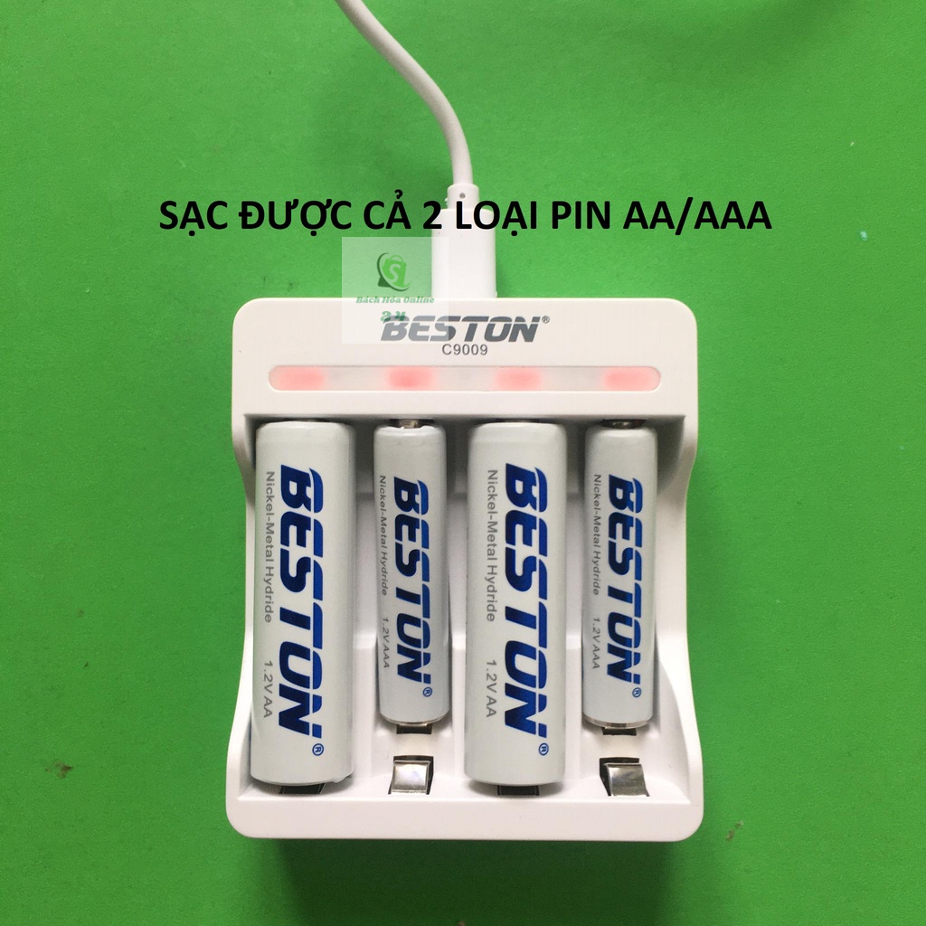 Bộ Sạc Pin AA, AAA Beston C9009 Tự ngắt khi đầy Sạc nhanh Có đèn báo đầy, Pin sạc chính hãng