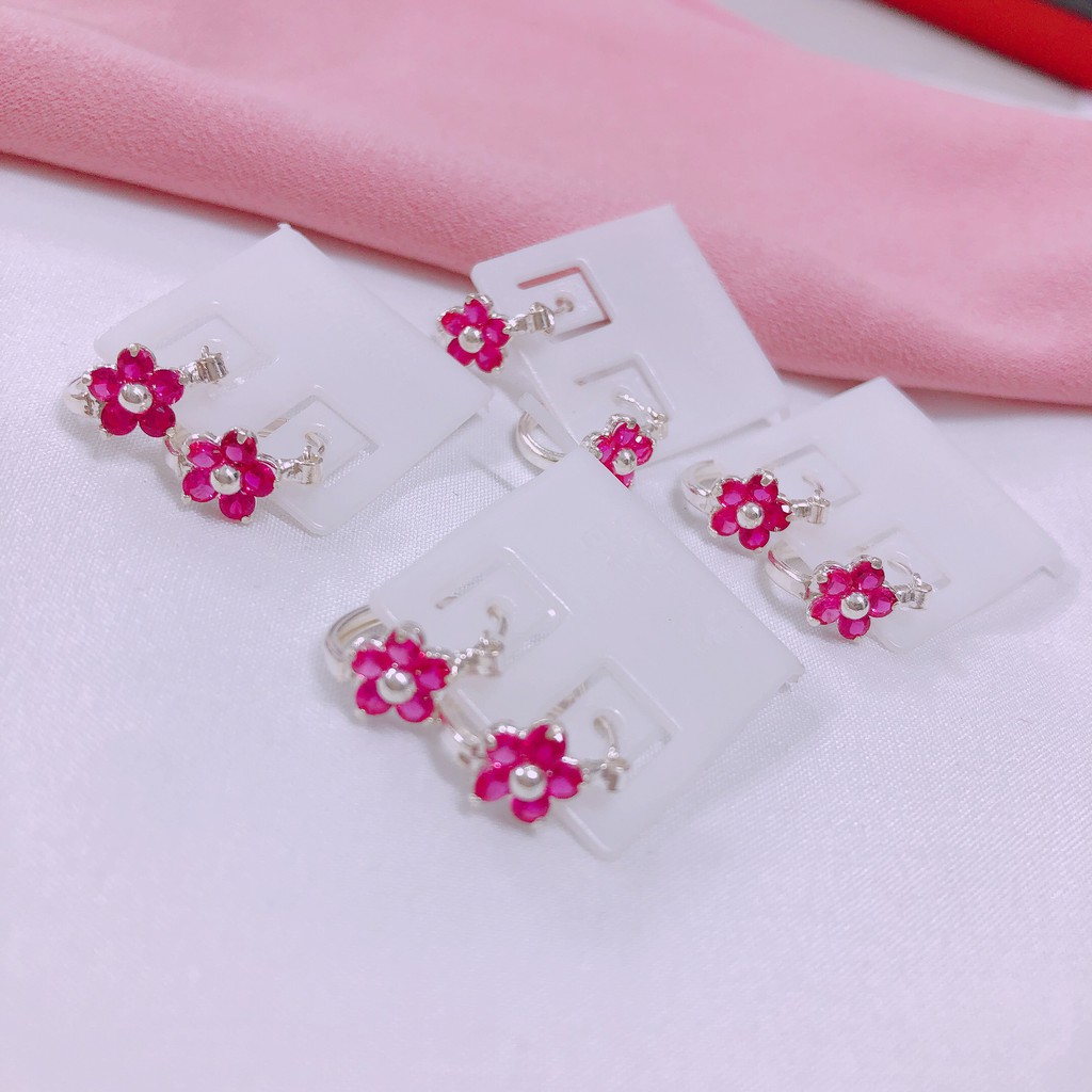 BÔNG TAI BẠC TA CHO BÉ GÁI HOA GẮN ĐÁ HỒNG XINH XẮN - BIBI SILVER - BBS