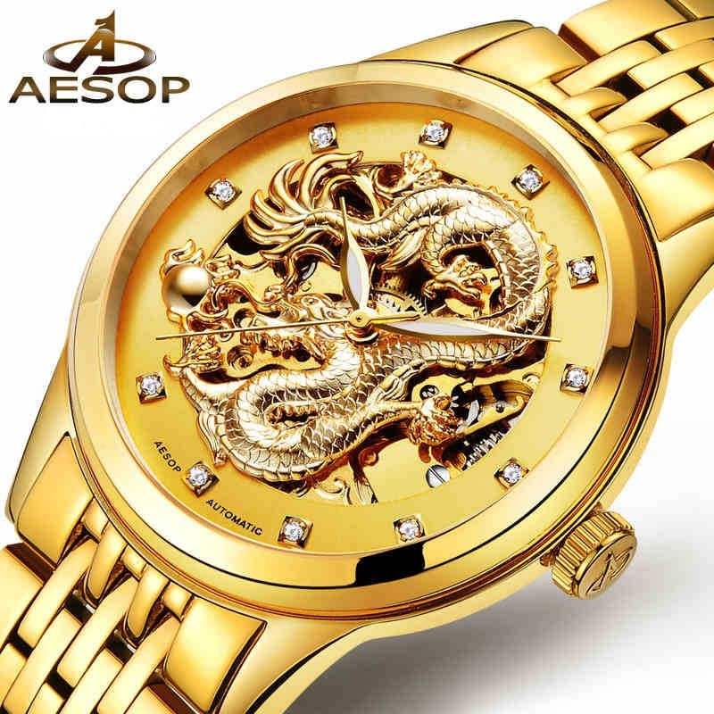 C06 Đồng hồ cơ nam AESOP 9010 GOLD DRAGON