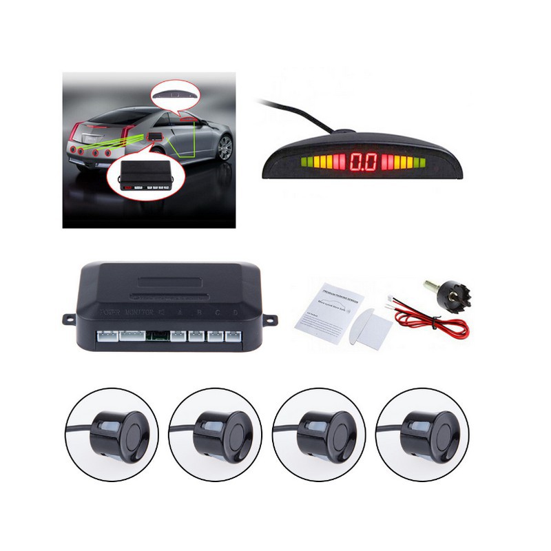 Cảm Biến Lùi 4 mắt cảnh báo va chạm xe hơi ô tô ĐỦ 3 MÀU đen bạc trắng