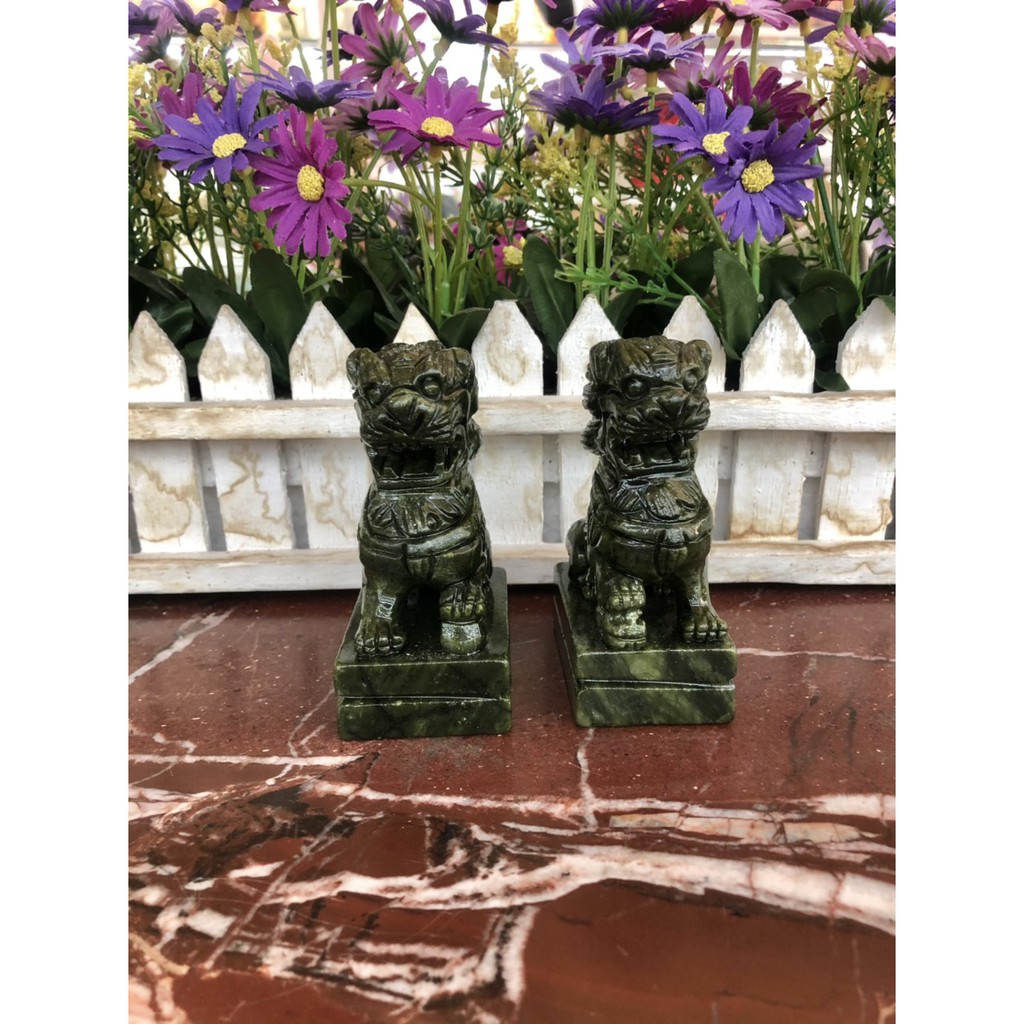 Cặp Kỳ Lân phong thủy đá Seperentine ( đá ngọc Ấn Độ ) trang trí bàn làm việc - Cao 9 cm