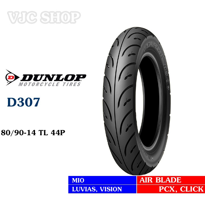 Cặp lốp Dunlop cho xe Air Blade, Vision (Lốp trước D307 80/90-14 và lốp sau D307 90/90-14) - Tặng móc khóa Dunlop