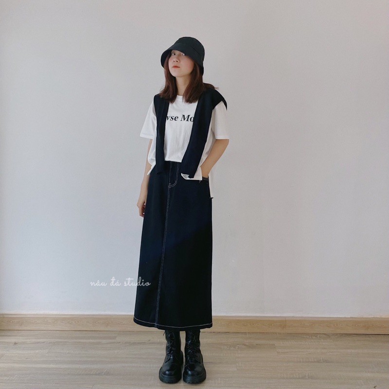 CHÂN VÁY JEAN PHỐI VIỀN (Hình thật/Có sẵn)