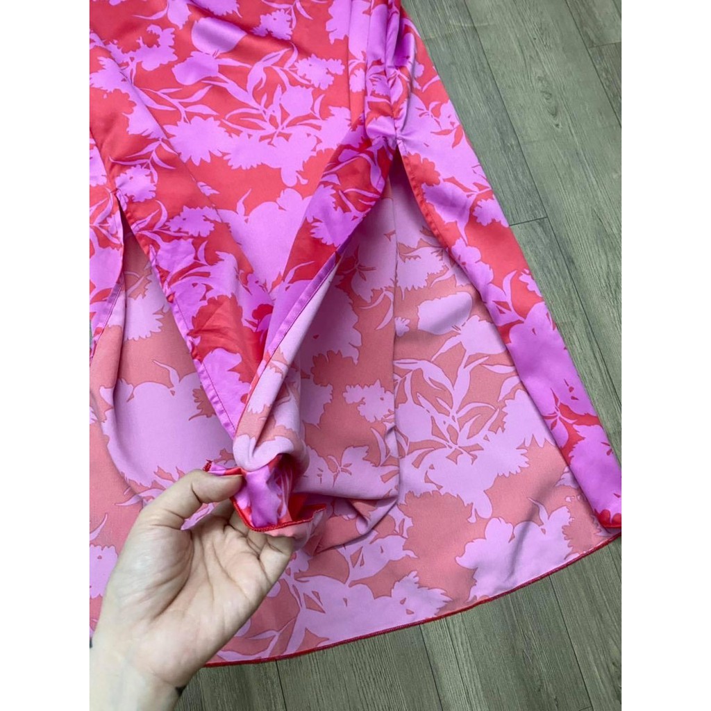 CHÂN VÁY SATIN LỤA PHỐI HOA MÀU HỒNG ĐỘC LẠ XẺ TÀ ( hàng xuất )