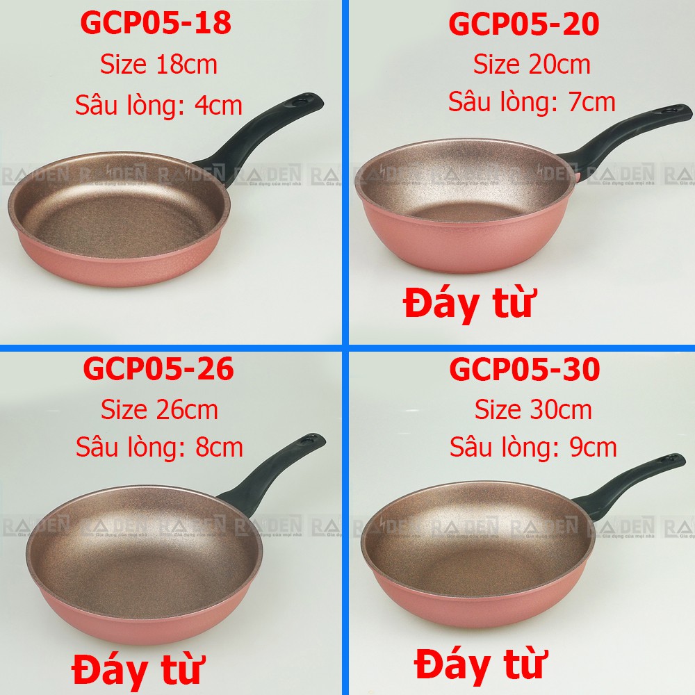 Chảo đúc vân đá 7 lớp chống dính Greencook GCP05-18 / 18cm, GCP05-20IH / 20cm, GCP05-26IH / 26cm, GCP05-30IH / 30cm