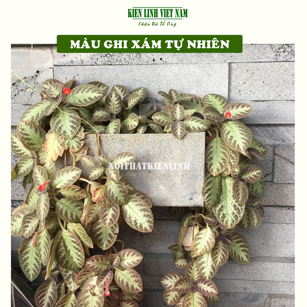 Chậu cây cảnh đẹp, treo tường, hình chữ nhật bằng đá ong xám Dài 30xR10cmxC15cm, chậu trồng hoa treo tường