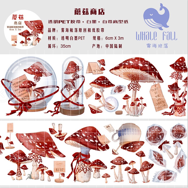 [Chiết] Washi Tape 35x6cm băng dính trang trí, băng keo washitape Whale Fall chủ đề nấm Mushroom 2 làm nền tranh washi