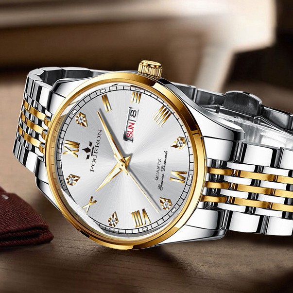 Đồng Hồ Nam FOURRON FU288 chạy 2 lịch thiết kế sang trọng lịch lãm dây thép không gỉ cao cấp