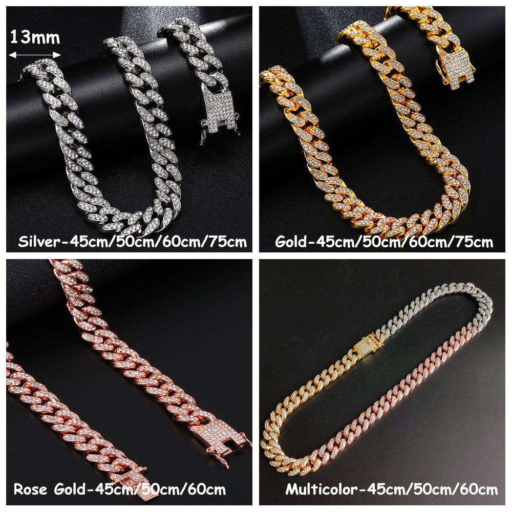 Chuỗi Dây Chuyền Dát Kim Cương Sáng Bóng Sang Trọng Phong Cách Hiphop Rộng 12mm Cuba Cho Nam Và Nữ