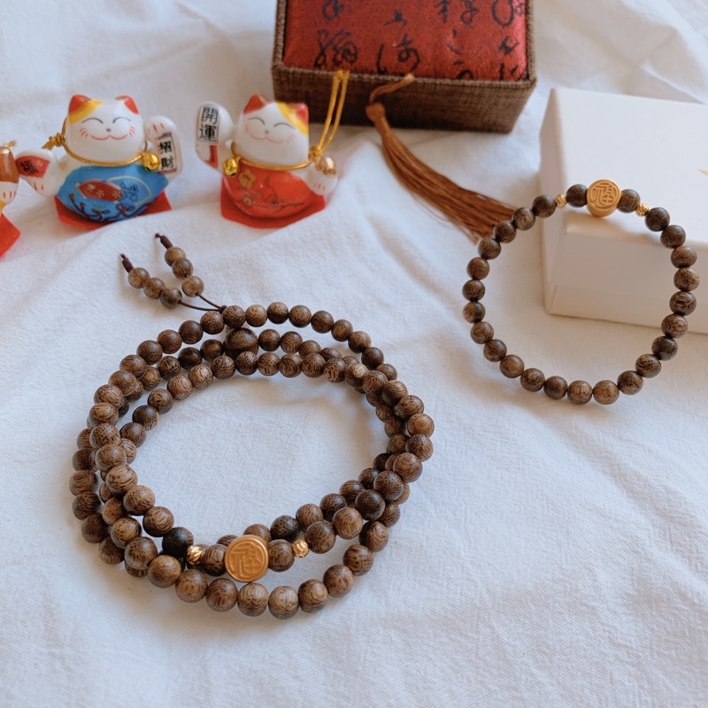 Chuỗi vòng Trầm Hương 108 Hạt Tự Nhiên Giá Sỉ - Tặng kèm Hộp gấm