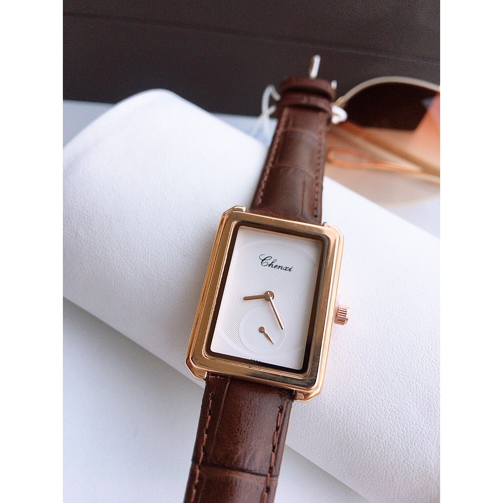 [Có Ảnh video Thật] Đồng hồ Nữ Mặt chữ nhật Chính hãng Chenxi Dây da cao cấp