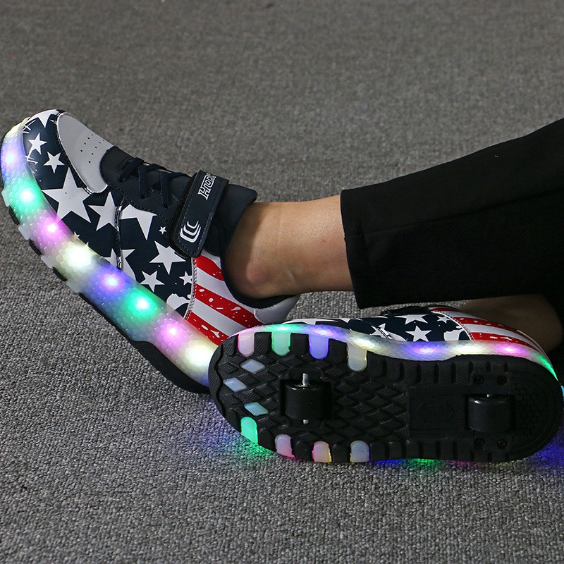 (Có sẵn) Giày bánh xe - Bánh gót - trượt Patin có đèn Led cho bé trai 3-15 tuổi LED001-XANH