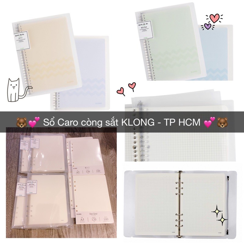 [có sẵn] 🐻💕 Sổ Caro còng sắt KLONG [A5-6 lỗ] và [B5-26 chấu] 💕🐻