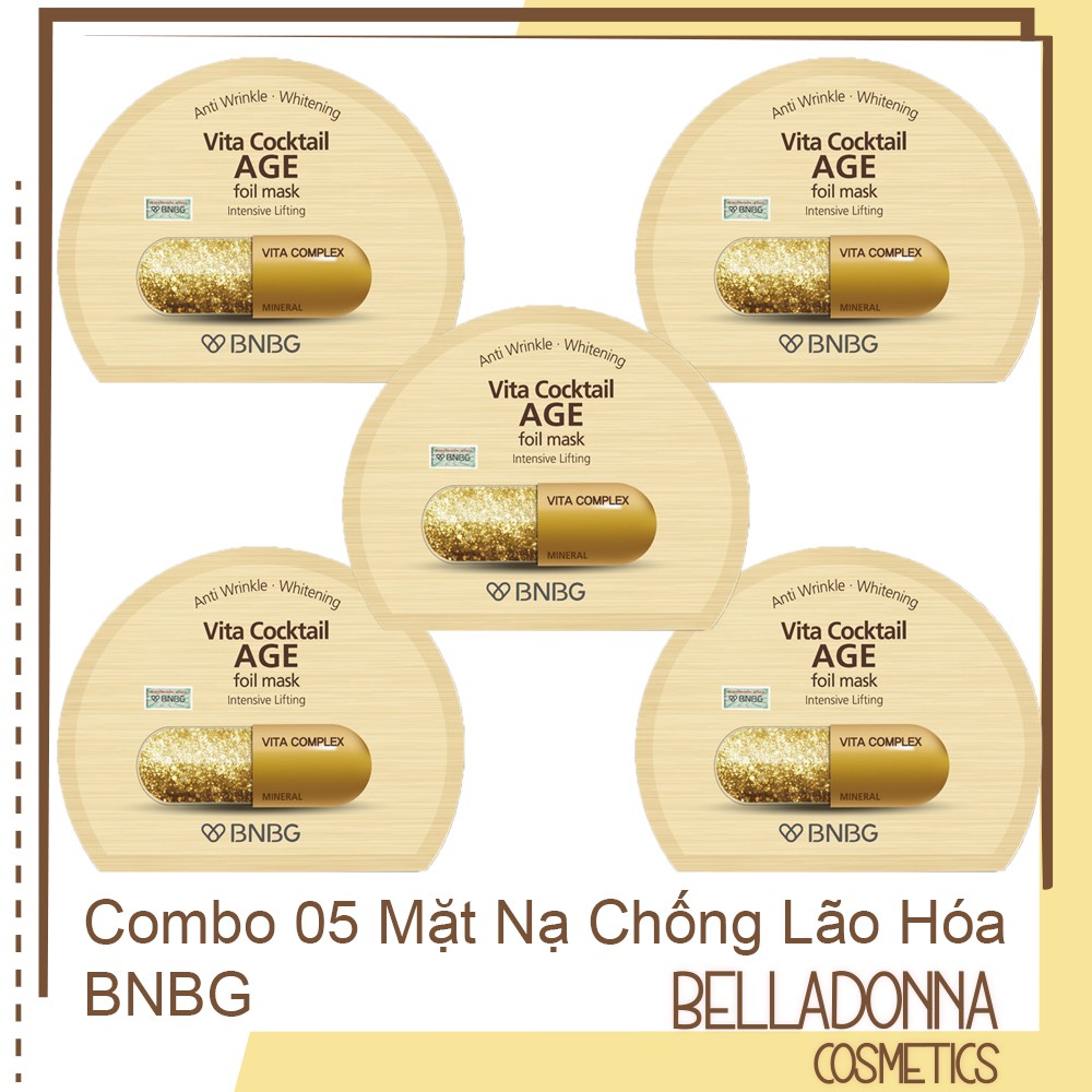 [Có Tem] Combo 05 Mặt Nạ Chống Lão Hóa BNBG Vita Cocktail Foil Mask Cho Da Khô 30ml x 05 #Age