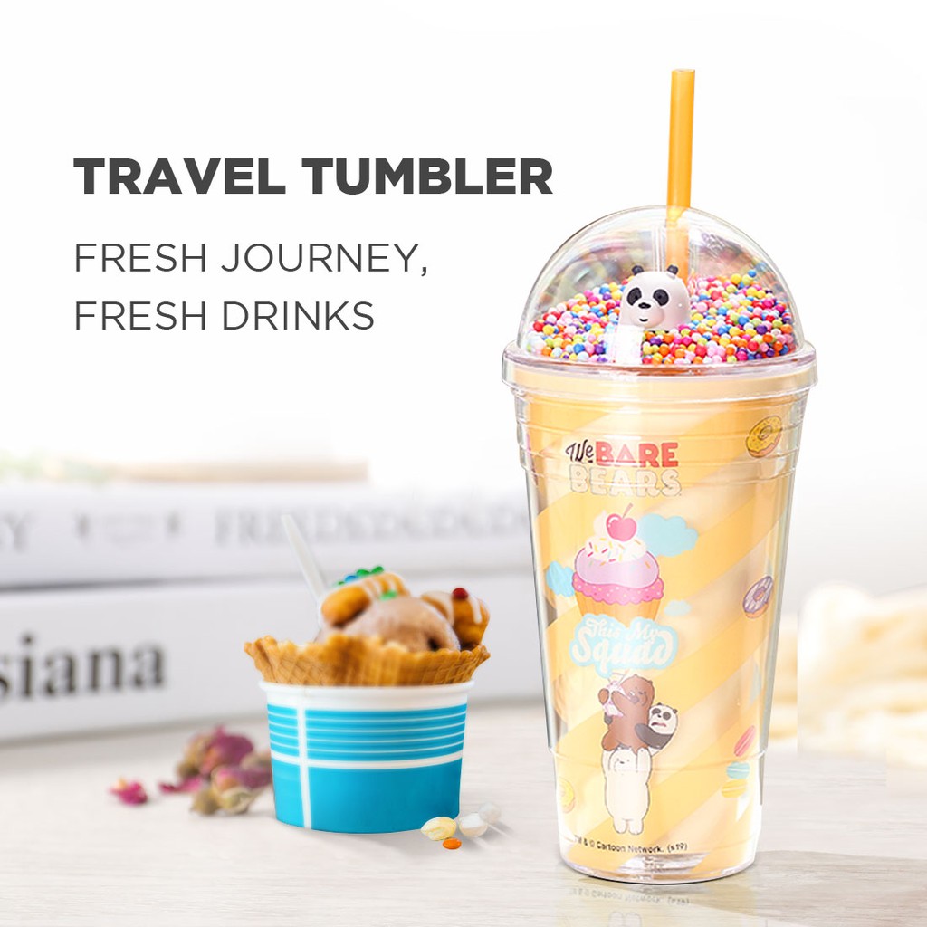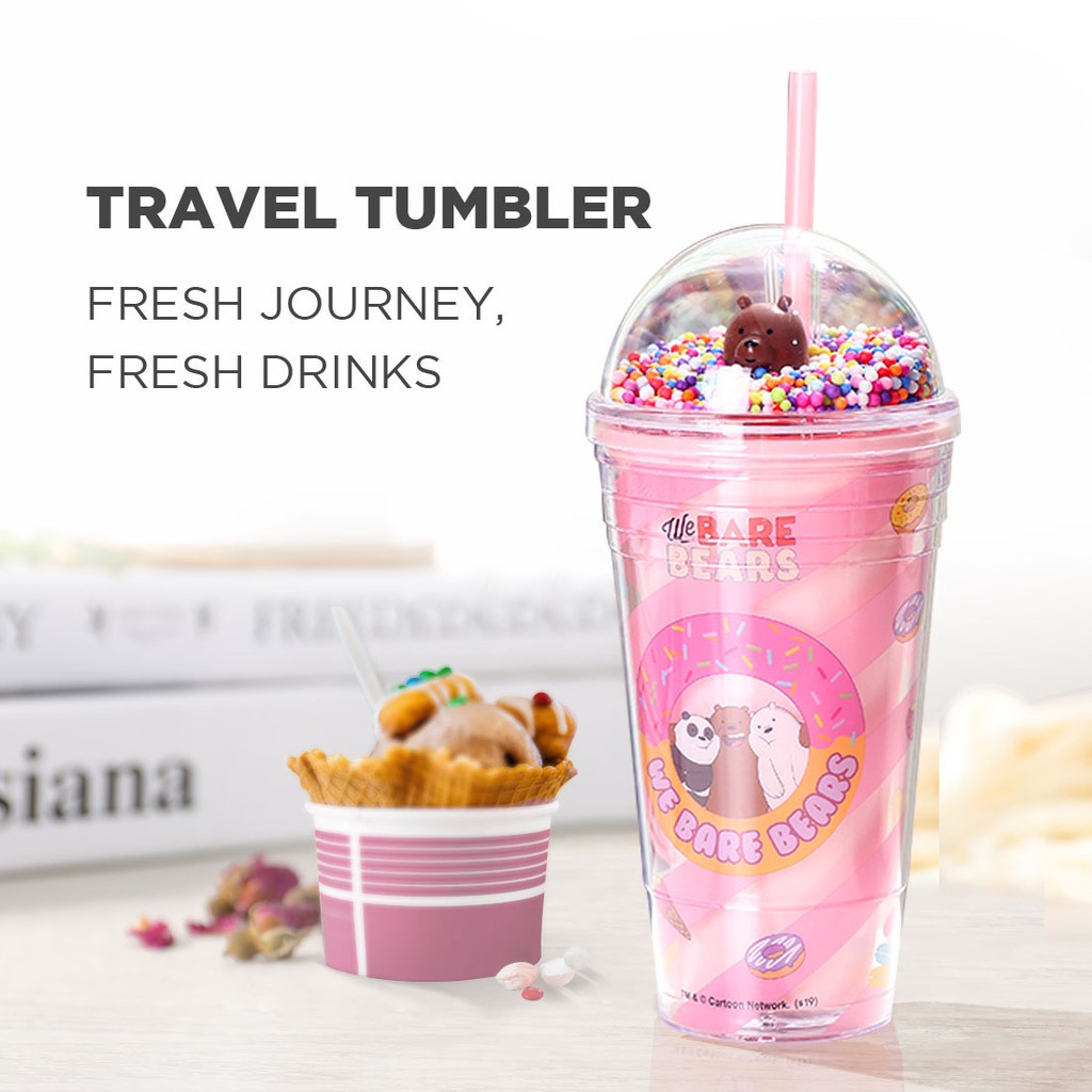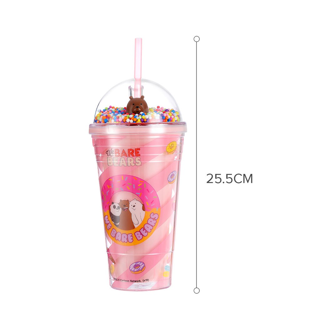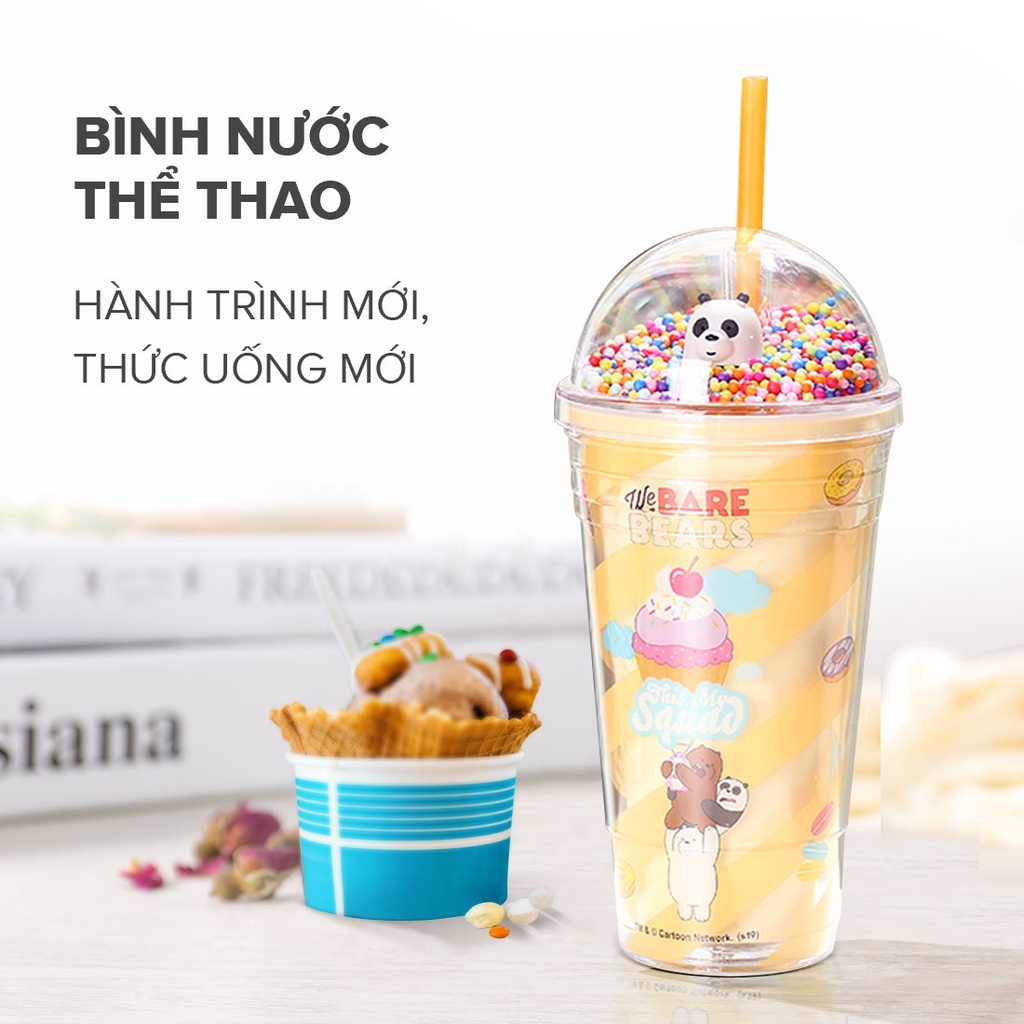 Cốc nhựa kèm ống hút We Bare Bears x Miniso ly 2 lớp cao cấp hồng/xanh/vàng dễ thương dung tích 480ml