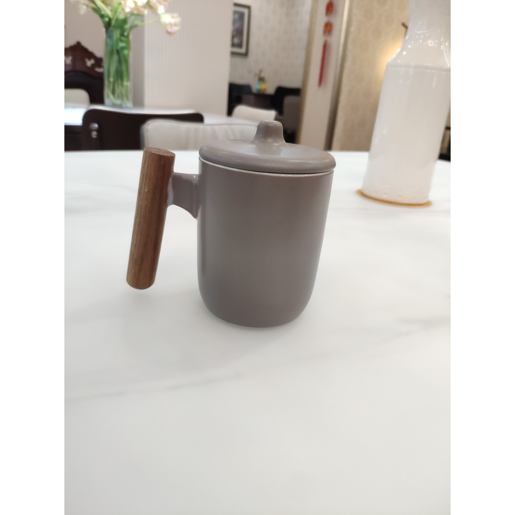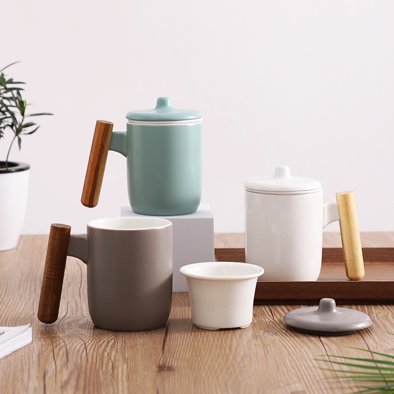Cốc uống trà có ngăn lọc trà đa năng Gốm sứ quai gỗ phong cách Nhật Bản