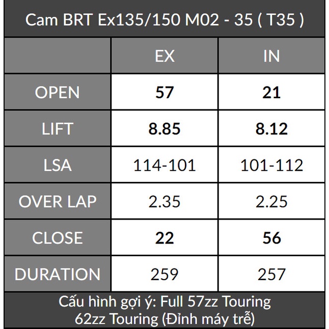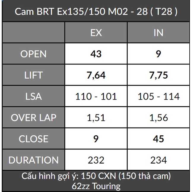 Cam BRT Exciter (Exciter 150 Ex150 FZ150 TFX R15v2 Ex135)