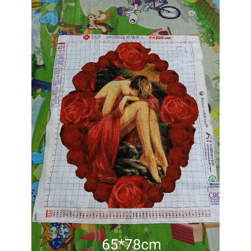 (Đã Thêu 34) Tranh Thêu Mẫu Người Cô Gái Hoa Hồng ZA20694