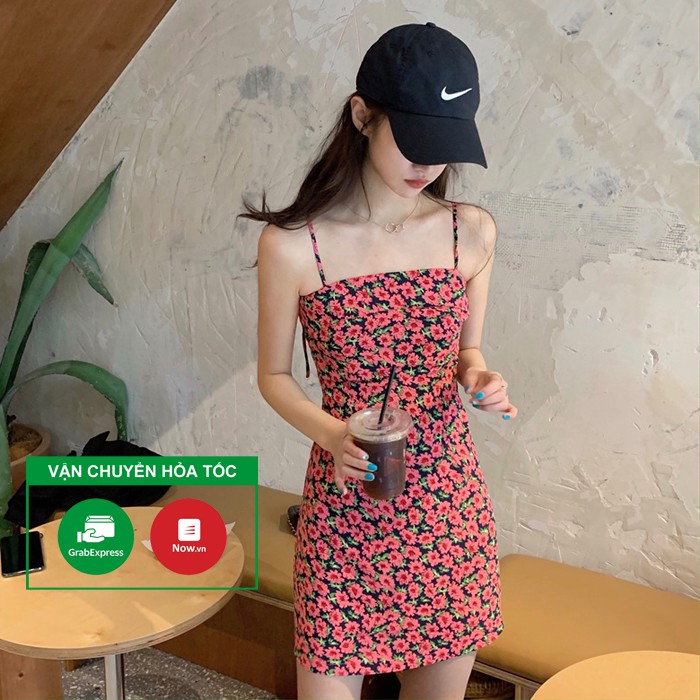 Đầm 2 dây hoa nhí dáng ngắn, váy hai dây hoa, chất cotton, kiểu dáng mới nhất hè 2021