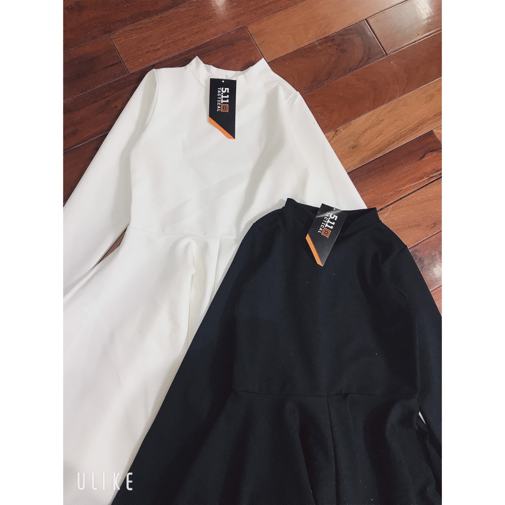 Đầm nữ dáng xòe umi - Váy trơn nữ dài tay dáng lỡ 2 màu