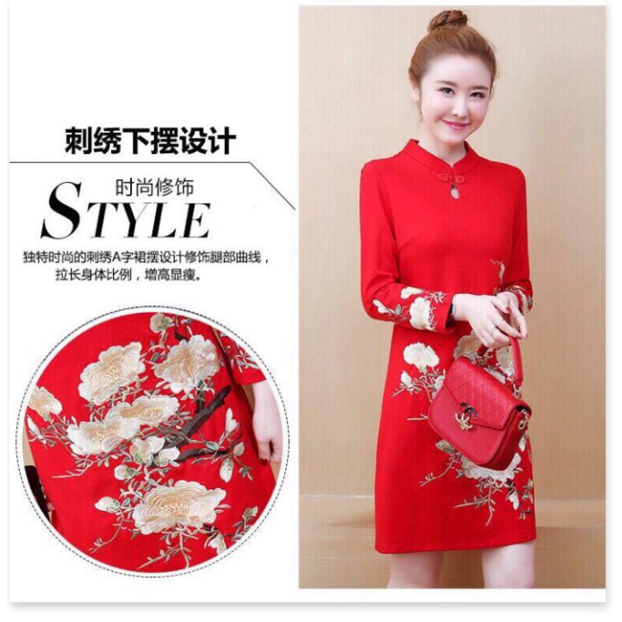 Đầm Suông Thêu Hoa Cổ Tàu Sang Trọng Gh290343 Tặng Kèm Nước Hoa