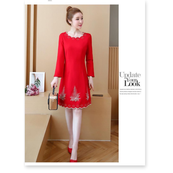 Đầm Suông Thêu Hoạ Tiết Tay Lỡ Ks270315