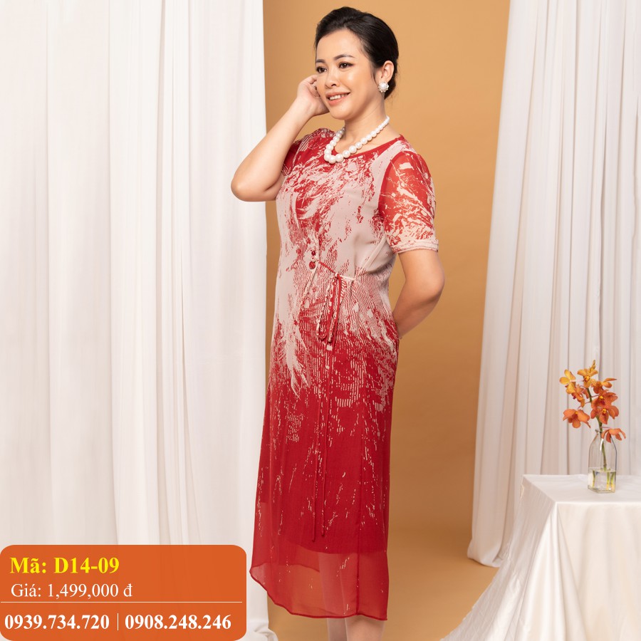 Đầm suông trung niên iDiva D14-09 chất liệu lụa voan cao cấp, bigsize phù hợp u50 dự tiệc & dạo phố