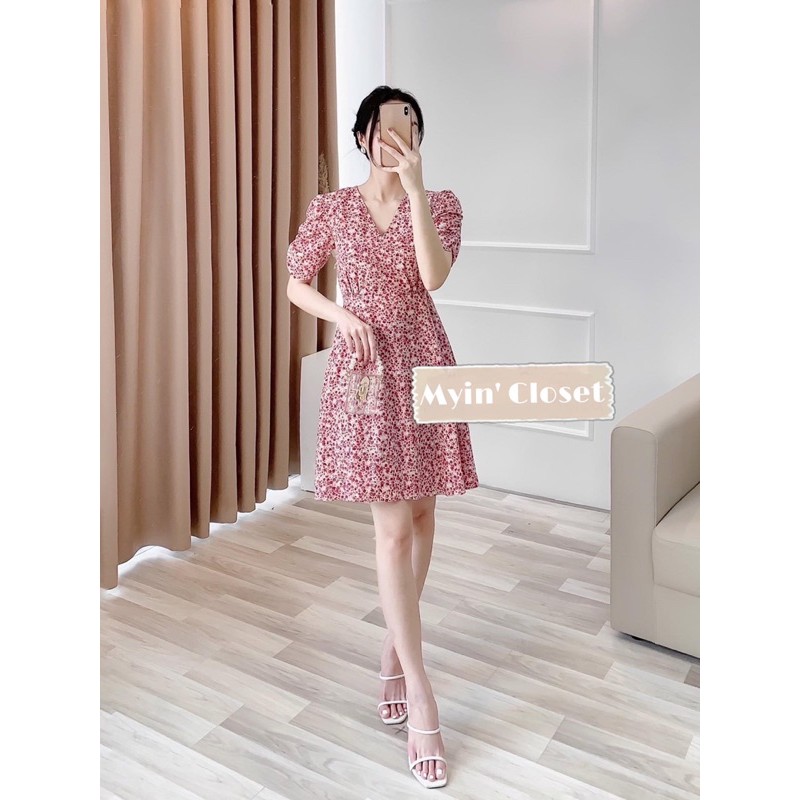 Đầm xòe hoa Dự Tiệc, Cổ V 2021 hàng đẹp cao cấp Myin