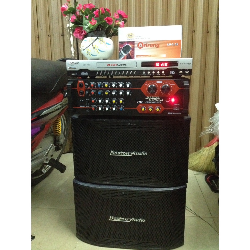 Dàn karaoke gồm: Amply Boston và Cặp loa Boston gỗ tặng Mic