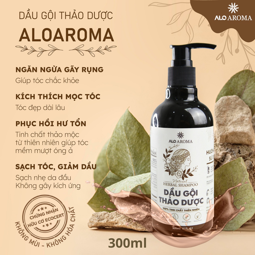 Dầu gội thảo dược thiên nhiên AloAroma giảm rụng, kích thích mọc tóc, phục hồi tóc hư tổn 300ml