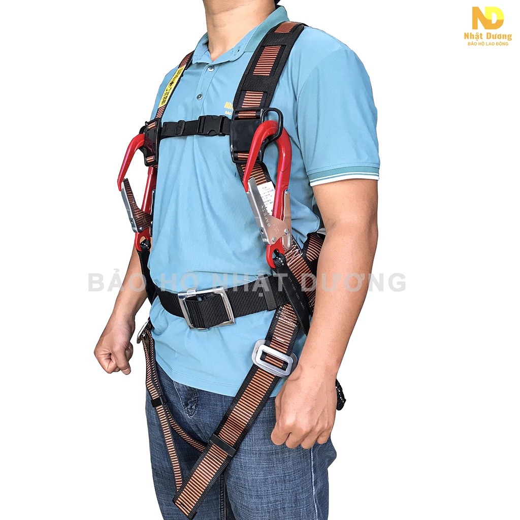 Dây an toàn toàn thân 2 móc nhôm thun đàn hồi giảm xóc có túi HPBEN33, Dây bảo hộ lao động Nhật Dương Kukje
