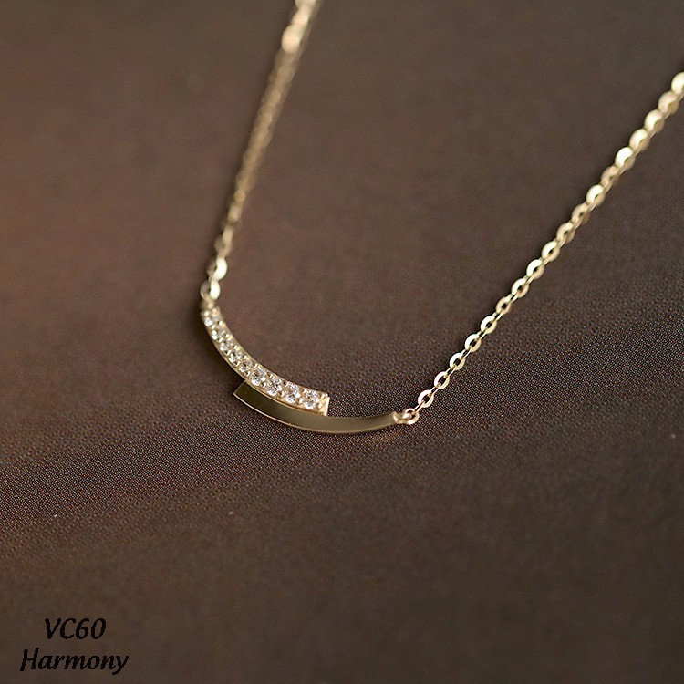Dây chuyền bạc nữ mặt cong dài basic đính đá 2 màu xi bạch kim và vàng sang chảnh | HARMONY ACCESSORIES VC60