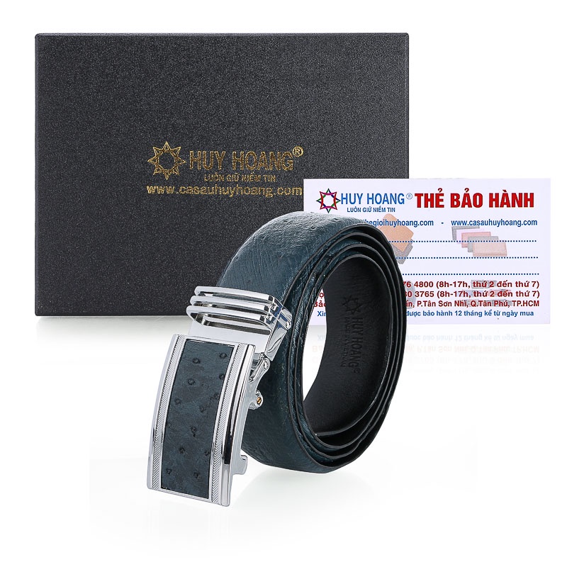 Dây nịt nam da đà điểu Huy Hoàng 4P da hột màu xanh đậm HP4454