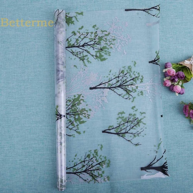 Decal dán kính, Giấy dán kính mờ in hình cây khổ 90cm mã 9854