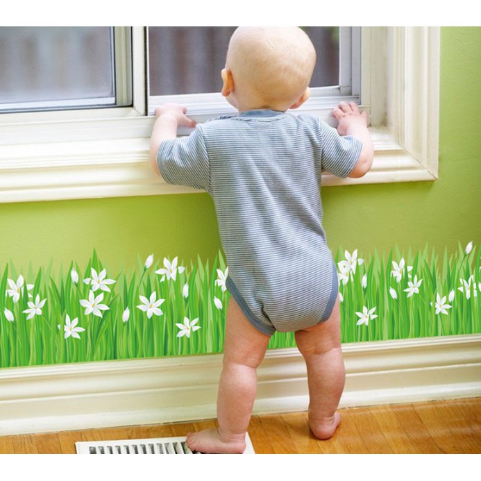 Decal trang trí chân Cỏ Hoa Sao trắng-K19