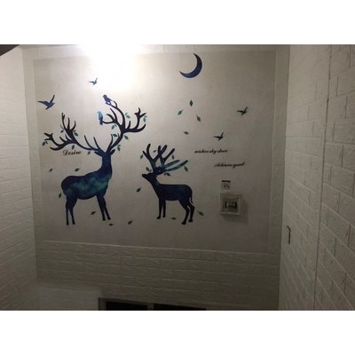 Decal Trang Trí, Decal Dán Tường, Tranh Dán Tường 3D, Chống Thấm Nước, Dán Cửa Kính, Dễ Làm Sạch - Hai Con Nai SỪng Tấm
