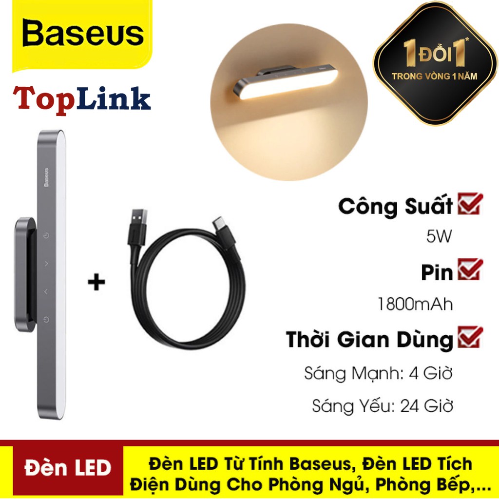 Đèn Led Tích Điện Treo Tường Không Dây 1800mah Baseus DGXC-C0G Cảm Ứng Hít Mạnh Bề Mặt Sắt 3 Chế Độ Sáng