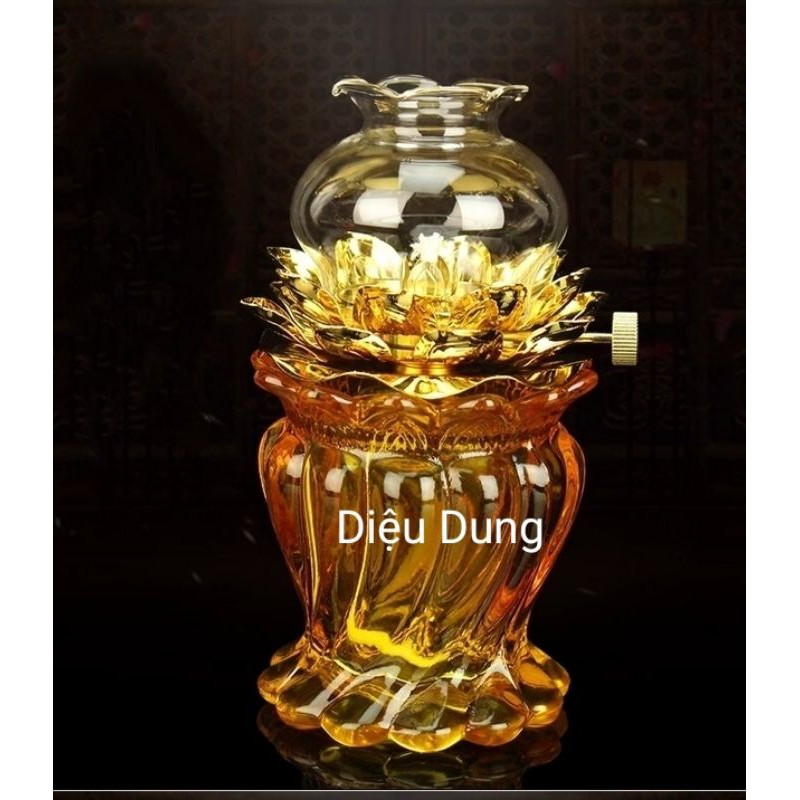 Đèn thờ hoa sen thủy tinh thân xoắn