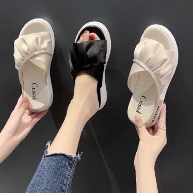 Dép nữ thời trang, quai ngang xếp ly, dép dạo phố, đi biển L1