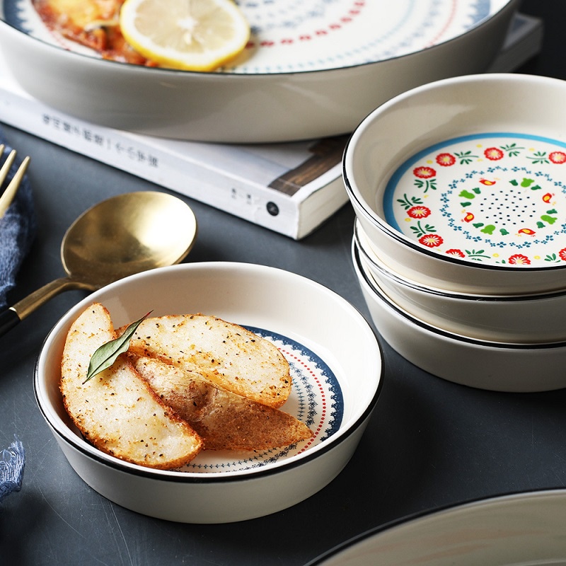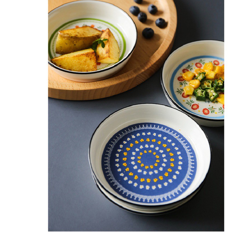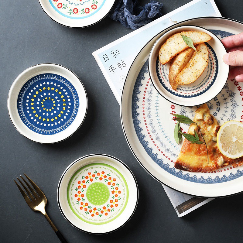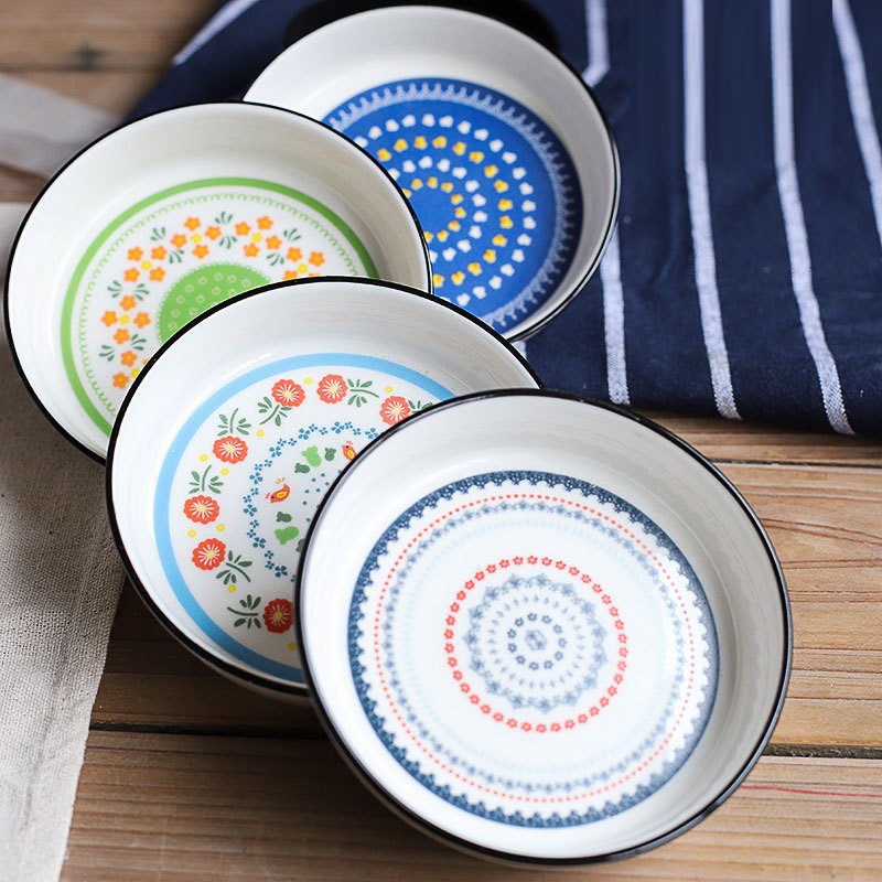 Đĩa gia vị, bát ăn dặm 3.5inch họa tiết vẽ thủ công phong cách Châu Âu cổ điển