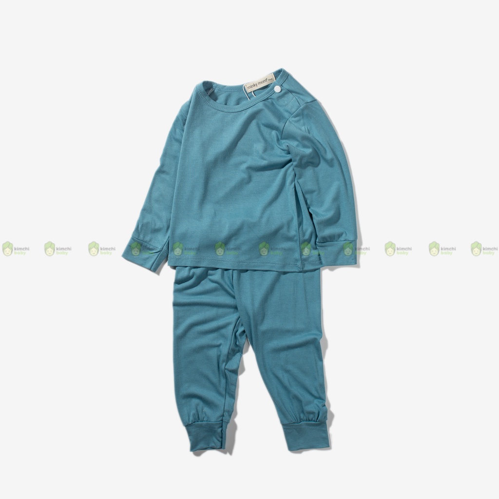 [BÉ 10-25KG] Đồ Bộ Bé Gái, Bé Trai KIMCHIBABY Vải Thun Lạnh Cài Vai Basic Mềm Mịn, Bộ Dài Tay Cho Bé Mặc Nhà MKMTD2101