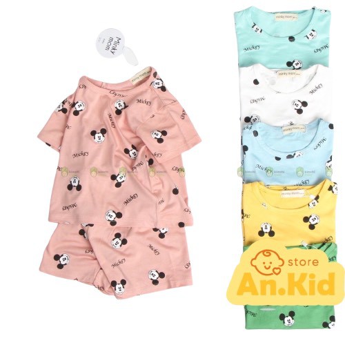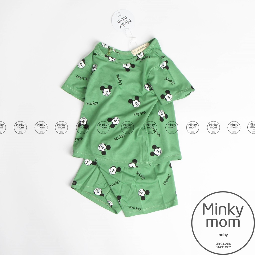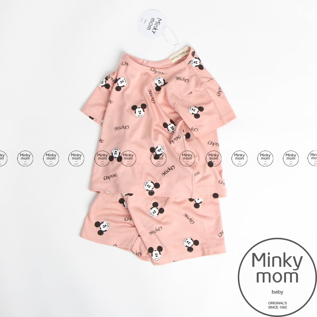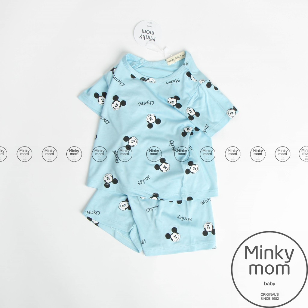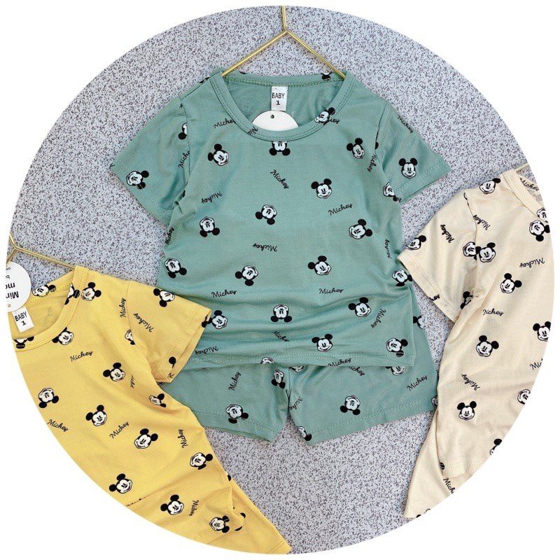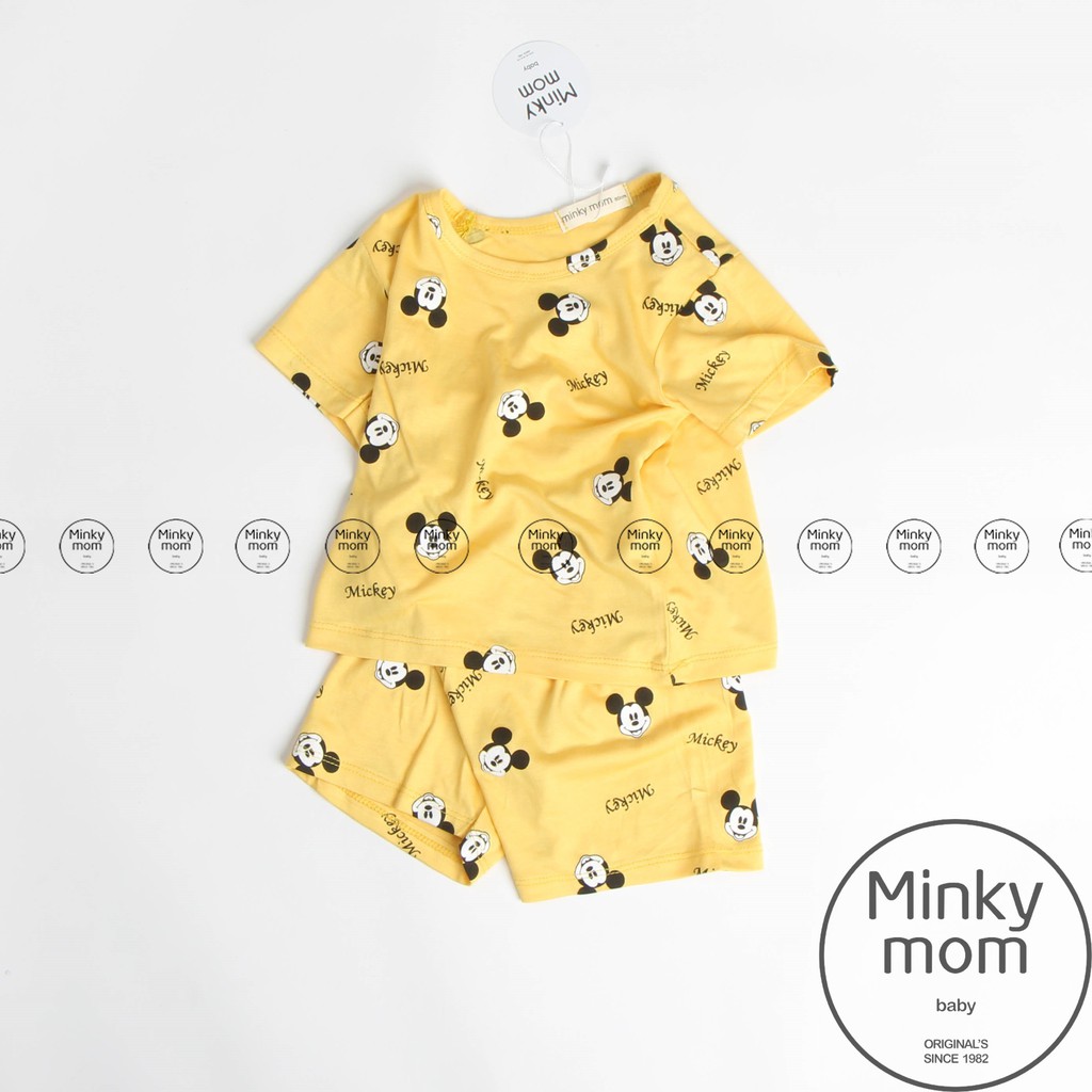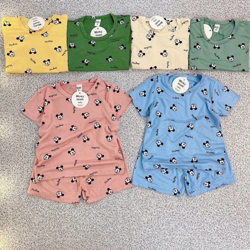 Đồ Bộ Bé Trai, Bé Gái Minky Mom Vải Thun Lạnh Họa Tiết Mickey In Nhỏ Dễ Thương, Bộ Cộc Tay Cho Bé Mặc Nhà Mùa Hè MKM