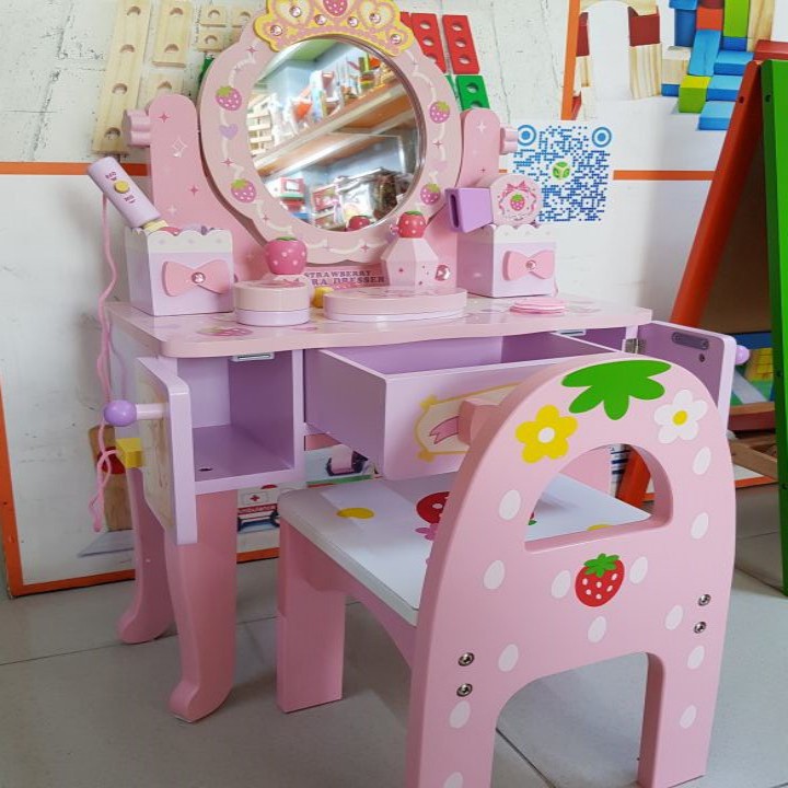 Đồ Chơi trẻ em thông minh - Set bàn ghế trang điểm dâu tây đáng yêu cho bé gái thêm ngọt ngào, nữ tính