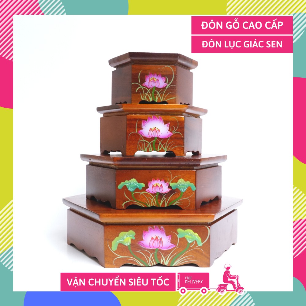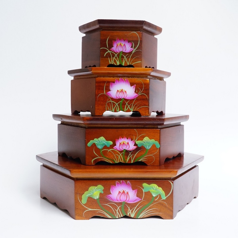 Đôn gỗ lục giác đế gỗ đặt tượng thờ cúng hoa sen đẹp đế gỗ đặt chậu cây - Nhiều cỡ