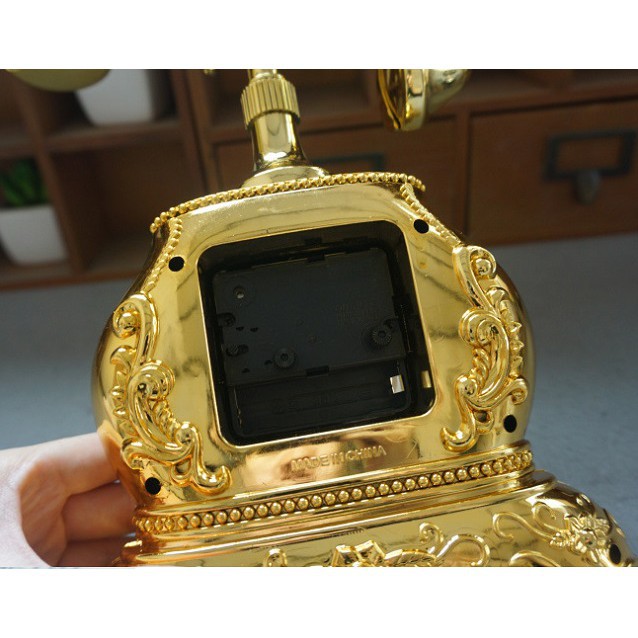 Đồng hồ để bàn giả điện thoại cổ màu vàng hàng Quảng Châu